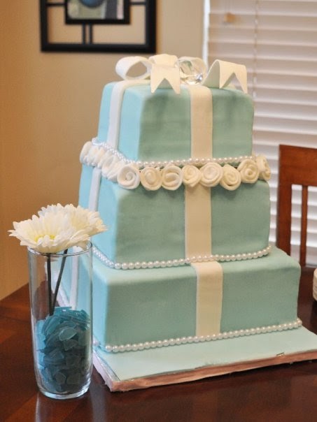 I did this cake for my sister in law who was getting married. It was a Tiffany & Co. themed shower. The top 2 tiers were WASC Cake and the bottom tier was just a dummy. Overall I was pretty happy. It was my first time using the SPS system in the cake for the support so there happened to be a gap between the layers so I just made some fondant roses real quick to hide the problem, but I have learned from my mistakes since then (2008) so I hope in the future this won't happen. Anyway, the SPS system is awesome and I would recommend it to everyone. I had a long way to travel with this cake so I needed a good support system and I can tell you this cake didn't move at all and was very sturdy. Thanks for looking.