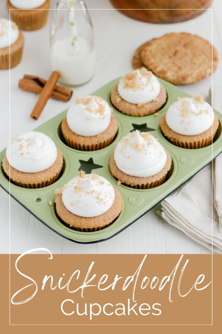 While we're on the subject of Snickerdoodles, don't forget to check out my recipe for Snickerdoodle cookies and save a few to top these cupcakes.